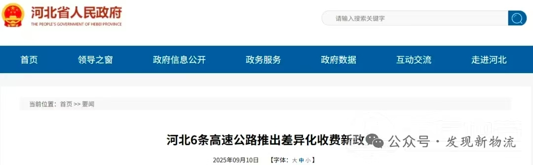 日前,河北省交通运输厅、河北省发展和改革委员会、河北省财政厅联合印发《关于实施京港澳河北段等6条高速公路差异化收费的通知》,从2025年9月5日起,至2025年12月31日,在河北省内高速公路规定路段连续行驶达到一定里程并驶出省内收费站的1至6类货车(包含专项作业车),对规定路段连续行驶里程应交通行费部分,在继续执行现行通行费减免政策的基础上,再优惠10%。