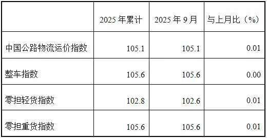 表1 2025年9月中国公路物流运价指数表