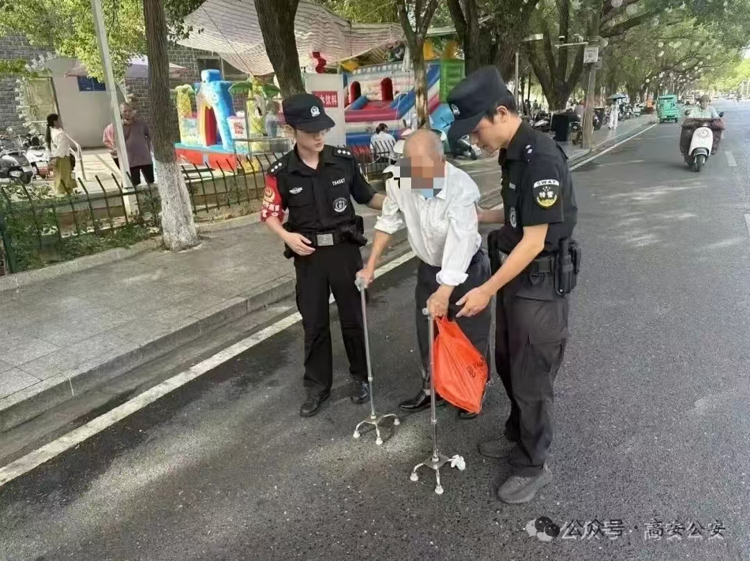 10月1日,特巡警队员在巡逻时,发现一老人行动不便,正在横过马路,队员立即警示过往车辆并将老人送至其老伴旁。