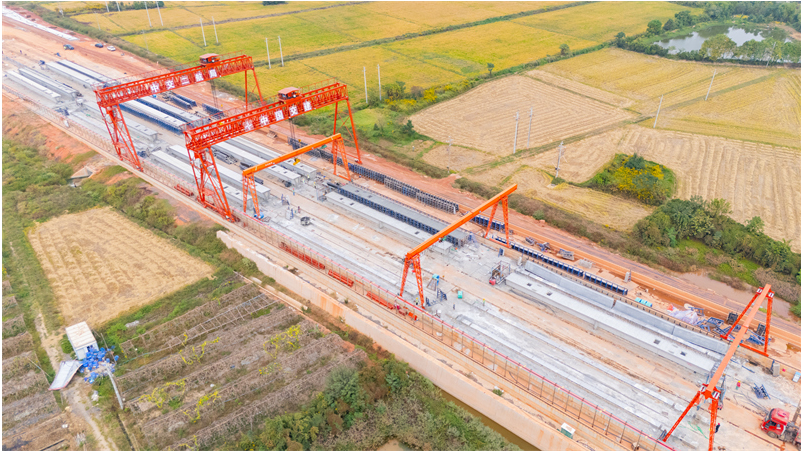 新南大道(G320)项目箱梁预制任务全部完成。图为箱梁预制现场。人民网记者 时雨摄